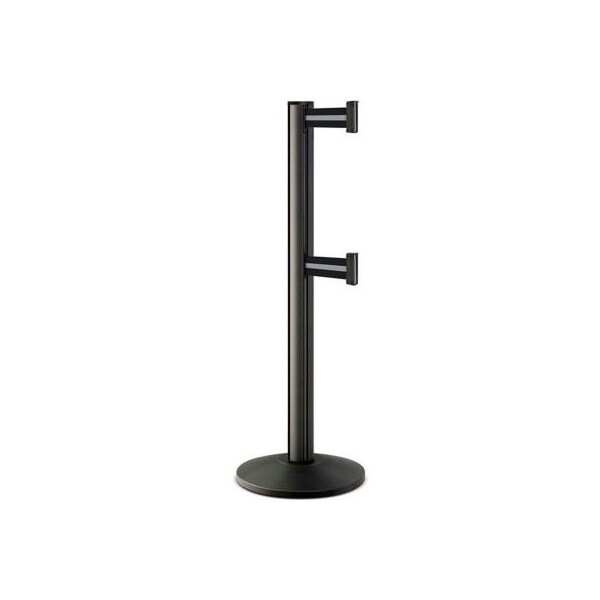Beltrac 3000 double line crowd control stanchions contain 2 parallel retractable belts totally embedded within the post. Each post contains 4 dovetail grooves and functions in the same method as our standard beltrac 3000 stanchions. The lower belt is 22" above the floor. This post is in compliance with ada (americans with disability act) regulations. Includes rubberized base to safeguard floors and a slow-retract belt to safeguard your customers.