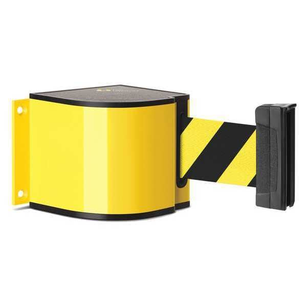 Retractable Belt Barrier, Mounting Style Wall, Belt Length 24 ft, Belt Color Black/Yellow, Belt Pattern Diagonal Stripe, Legend No Legend, Legend Color Not Applicable, Frame Color Yellow, Overall Height 3 3/8 in, Frame Finish Powder Coated, Includes 3011 Wall Receptacle, Includes Mounting Hardware Included