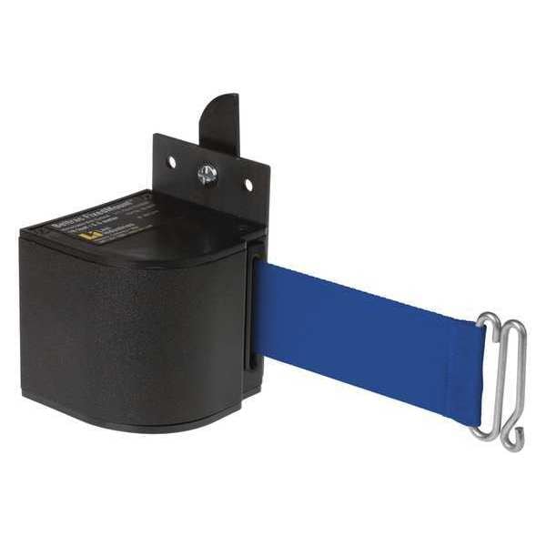 Warehouse Fixed Mount Retractable Belt Barrier, Mounting Style Fixed Mount, Belt Length 18 ft, Belt Color Blue, Legend No Legend, Legend Color Not Applicable, Frame Color Black, Overall Height 3 3/8 in