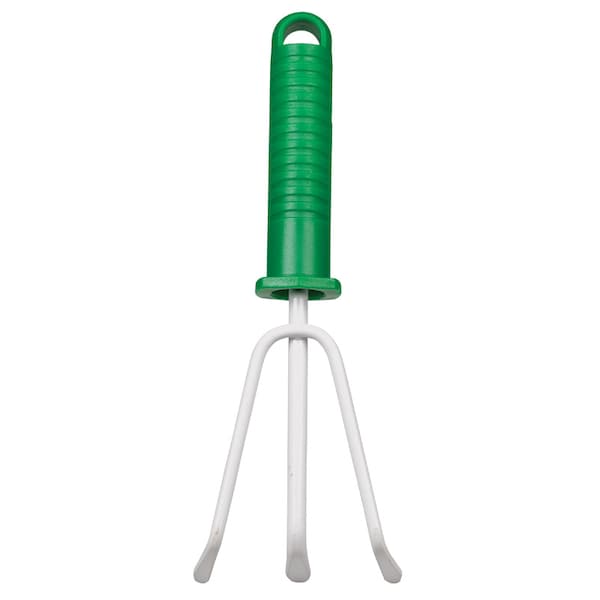 Loosen and aerate soil. Large tines give improved soil contact for faster work. Hang hole for easy storage.