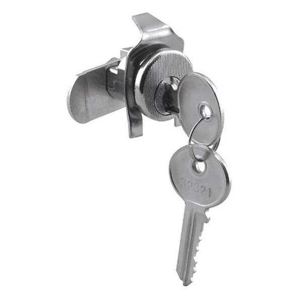 5 pin tumbler lock . Die cast cylinder with plated face. Plated steel cams. Spring steel locking clip. Locked position - left, 90 degrees counter clockwise to open.