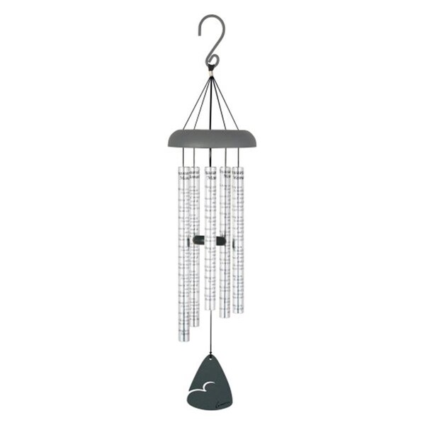 Ideal as a gift or accent for your patio the Treasured Memories Wind Chime withstands the test of time with a durable aluminum construction and industrial-strength cordage. Each silver-toned tube displays a meaningful sentiment complemented by a decorative striker that's easy to adjust as needed for more or less sound. Features -Durable aluminum construction -Powder coated and anodized finish -Each chime is fitted with adjustable striker -Sentiment printed onto each tube -Strung together with industrial cord -Length - 30 in. -Material - Aluminum -Finish - Black Silver -Style - Tubular