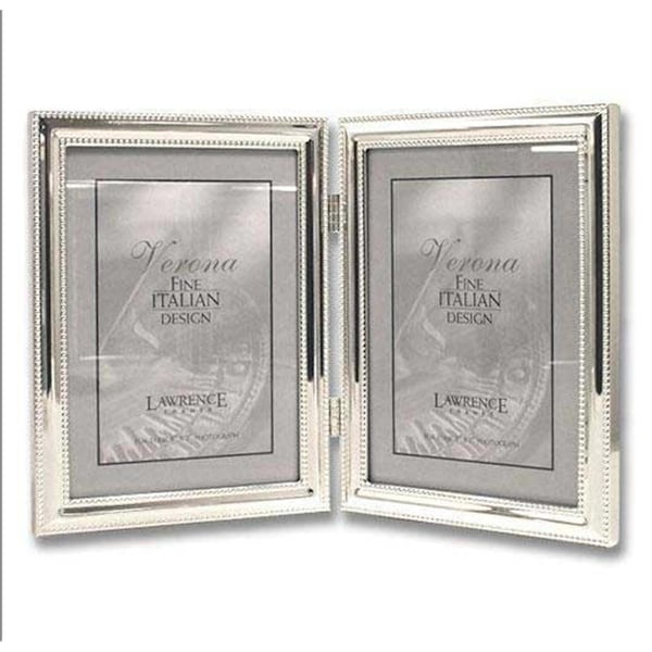 5x7 Hinged Double - Vertical - Metal Picture Frame Silver-Plate with Delicate Beading