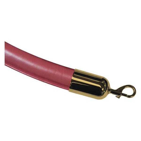 Barrier Rope, Rope Color Maroon, Overall Length 6 ft, Rope Diameter 1 1/2 in, Rope Material Naugahyde, End Cap Style Snap End, End Cap Material Brass, End Cap Finish Polished Brass