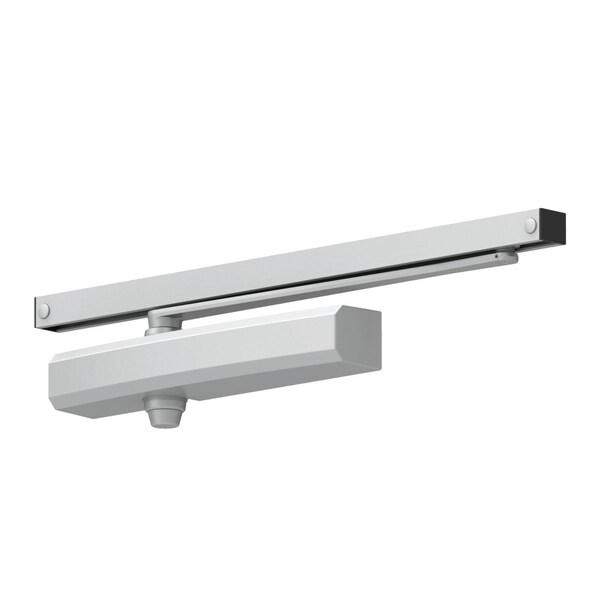 Grade 1 Cast Aluminum Surface Mount Closer, Size 1-6 Adjustable, Slide Track Arm Standard, Non-Handed, Slim Plastic Cover, Aluminum Painted Finish