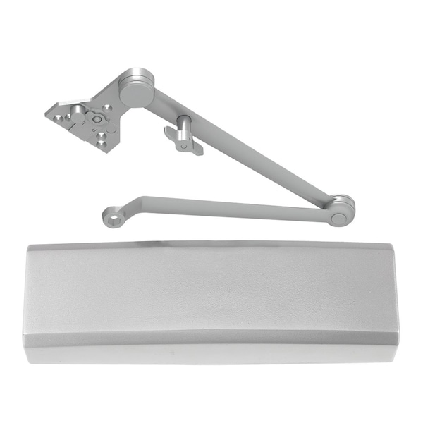 4050A Series Grade 1 Door Closer, Hold Open Cush-N-Stop Arm, Push Side Mounting, 110 Degree Swing, Adjustable Size 1 to 6 Set to 3, Plastic Cover, Special Rust Inhibitor, Non-Handed, Aluminum Painted Finish