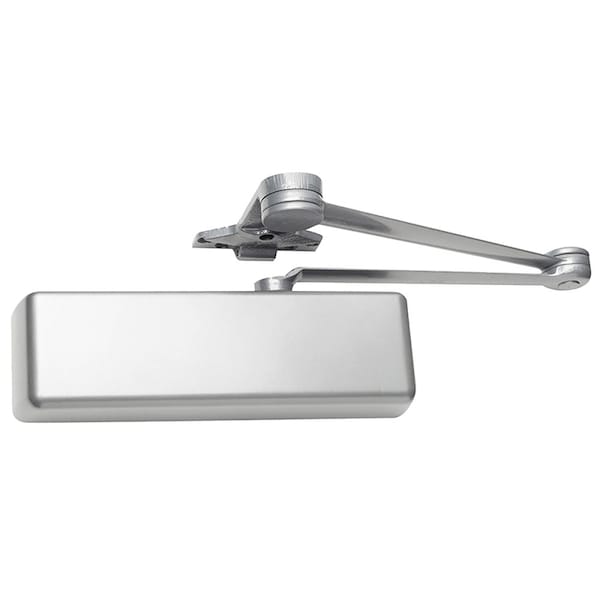 Grade 1 Surface Door Closer, Cush-N-Stop Arm, Push Side Parallel Arm Mounting, 110 Deg. Swing, Size 1 to 5, Full Metal Cover, Aluminum Painted Finish, Left-Handed