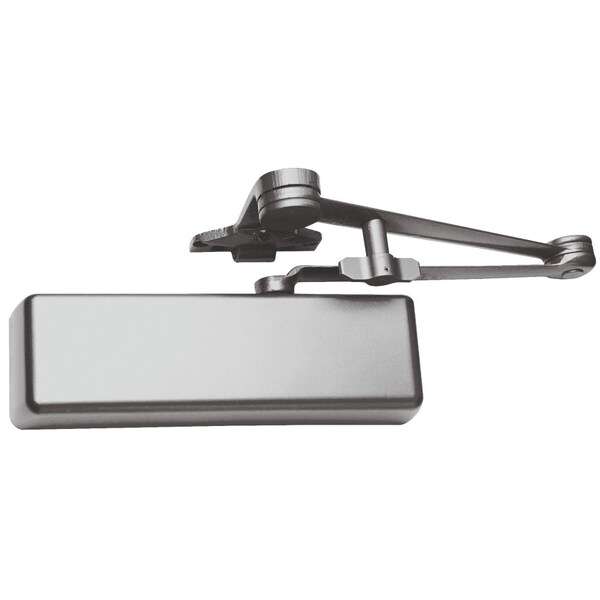 Grade 1 Surface Door Closer, Hold Open Cush-N-Stop Arm, Push Side Parallel Arm Mounting, 110 Deg. Swing, Size 1 to 5, Full Plastic Cover, Satin Chrome Finish, Right-Handed