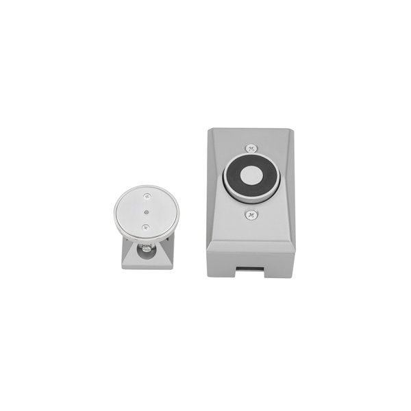 Sentronic Electro-Magnetic Single Door Holder, Surface Wall Mount, 4-1/8in Projection, Tri-Voltage 12V/24V/120V, 35lbs Holding Force, Die Cast Housing, ADA, UL, Wood and Machine Screws, AL/SP28/689 Aluminum Powder Coat