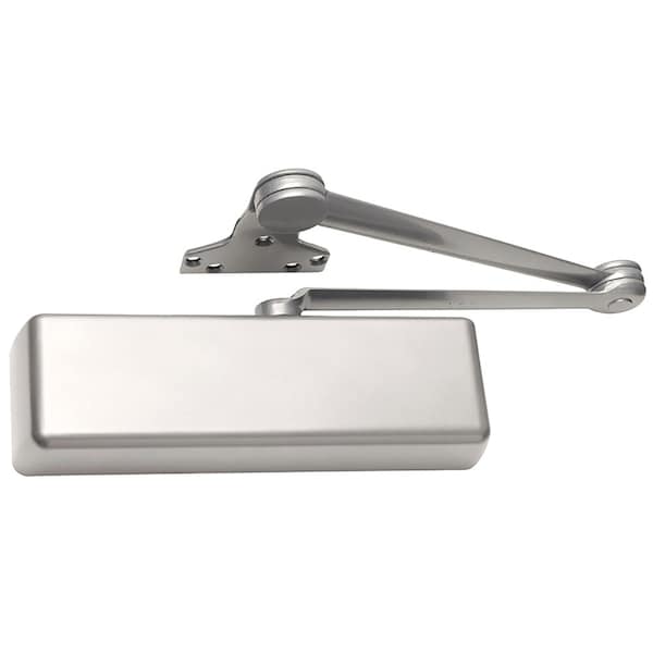 Grade 1 Surface Door Closer, Extra Duty Arm, Push Side Mounting, 180 Degree Swing, Adjustable Size 1 to 6 Set to 3, Plastic Cover, Torx Machine Screws, Non-Handed, Aluminum Painted Finish