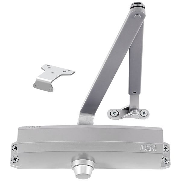 LCN 1250 Series Grade 1 Surface Door Closer, Hold Open Arm with PA Bracket, Size 1-5, Sprayed Aluminum Finish, Non-handed