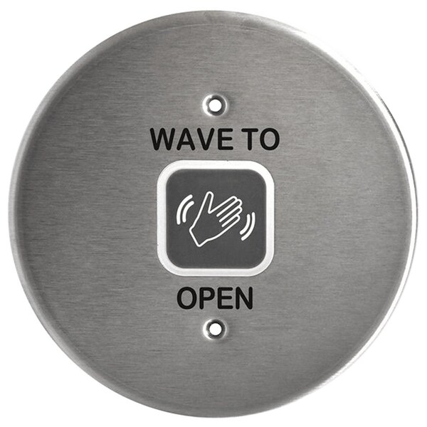 Heavy Duty Touchless Actuator, Round, Single Gang, Text & Wave Icon, Satin Stainless Steel