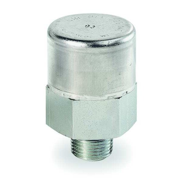 Pressure/Vacuum Breather, Thread Size 3/8 In., Dia. Hex Flats (In.) 1 1/4 in, Height 2.16, Top Cap Dia. (In.) 1 3/8 in, Overall Length (In.) 2 5/32 in, PSI 3-6, Filter 20 Micron Bronze, Keeps Dirt from Entering, Vacuum (In. Hg) 2-3, Steel Body; Aluminum Top; Buna N Seal, Allow Sealed Pressure Systems to Vent Off Excess Pressure as Heat in System Builds up, Air Pressure is Allowed Back into System as System Cools
