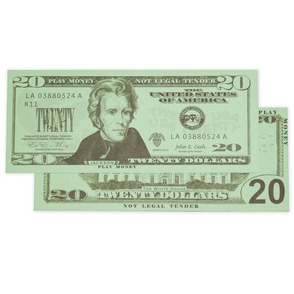 Play Money $20 Bills, 100 Pieces