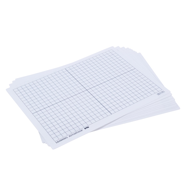 Set of 10 versatile boards are excellent for teaching coordinate grid concepts, graphing, arrays, area, perimeter and much more! Measuring 9" x 12", these plastic dry erase boards are printed on one side and blank on the other.