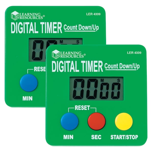 This unique digital timer counts up or down 1 - 100 minutes with a magnetic clip on the back. Easy to operate! Can stand alone, be clipped to a belt, or hung. Great for speech and debate classes, mock trials, sporting events, or anywhere accurate timing in required. 2.75 " x 2.75". Sold as a pack of 2 timers.