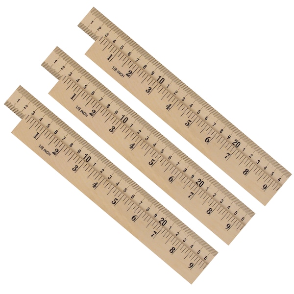 Students can compare U.S. customary and metric scales using these clear-coated Wooden Meter Sticks with easy-to-read black markings. U.S. customary side features inches in 1/8" increments. Metric side features both millimeters and centimeters. Sticks measure exactly 1 meter long. Plain ends, 7 mm thick. Pack of 3.