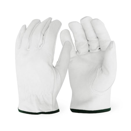 Leather Drivers Gloves, Premium Grain Goatskin, Slip-on, Keystone Thumb, Gunn Cut, White, L 1 PR