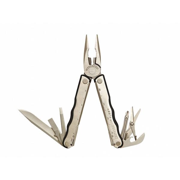Multi Tool with Nylon Sheath, Closed Length 4 In., Features 420HC Clip Point Knife, Needlenose Pliers, Regular Pliers, Wire Cutters, Hard-wire Cutters, Wire Stripper, Small Screwdriver, Large Screwdriver, Phillips Screwdriver, Scissors, Bottle Opener, Can Opener, 8 in / 19 cm Ruler, Handle Color Stainless Steel / Black, Includes Lanyard Ring, Number of Tools 13