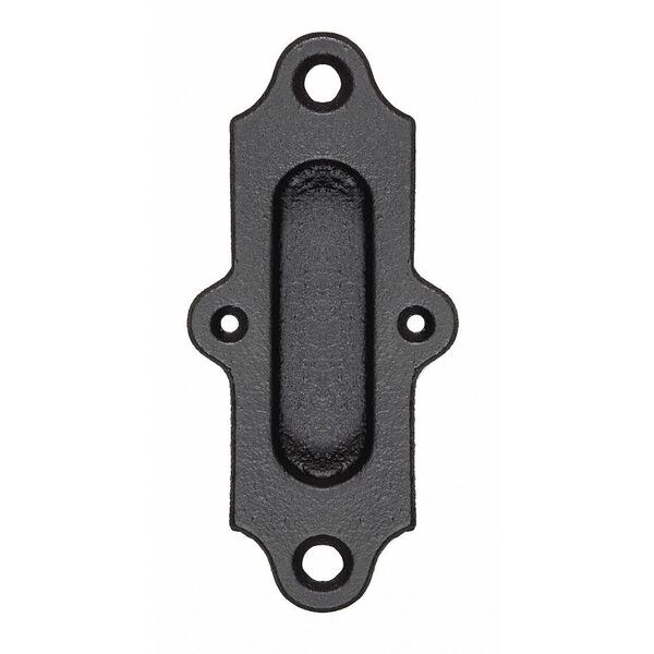 Flush Pull, Barn Door, Cast Iron, Black, Powder Coated Finish, Length (In.) 8 in, Height (In.) 3 1/2 in, Width (In.) 3 1/2 in, Surface Mounting, Number of Wheels 0, Cast Iron, Hardware Included, Requires Door, For Use With Barn Door Hardware