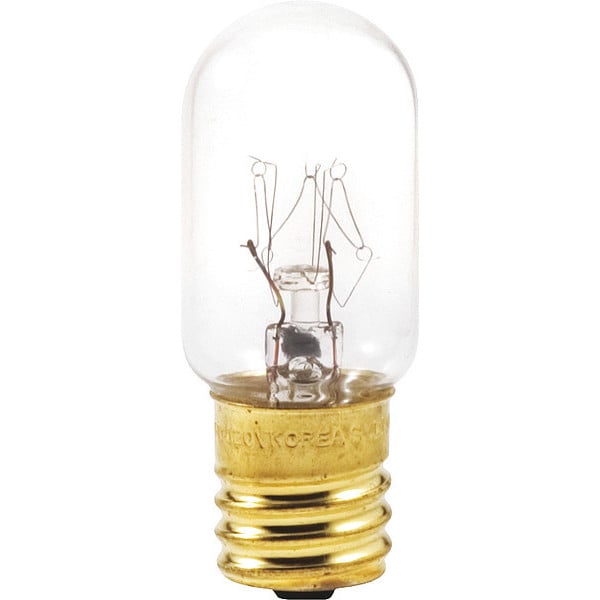 Incandescent Bulb, Bulb Base Type Intermediate Screw (E17), Bulb Housing Glass, Bulb Shape T8, Bulb Finish Clear, Color Rendering Index 100, Color Temperature 2850K, Lumens 230 lm, Light Technology Incandescent, Shatter-Resistant No, Trade Number Not Applicable, Voltage 120V AC, Watts 25 W, Bulb Beam Angle 60 Degrees , Rated Life 1,000 hr, Dimmable No, Light Color White, Overall Length 2 5/8 in
