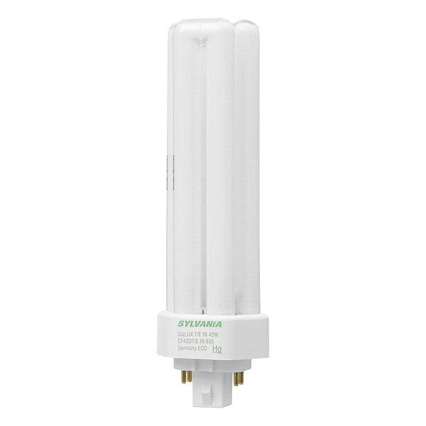 Compact Fluorescent Bulb, Bulb Base Type 4-Pin (GX24q-4), Bulb Finish Frosted, Trade Number CF42DT/E/IN/835/ECO, Bulb Shape T4, Color Rendering Index 82, Color Temperature 3500K, Incandescent Wattage Equivalency 190 W, Lumens 3,200 lm, Bulb Housing Glass, Light Technology Fluorescent, Shatter-Resistant No, Voltage 120V AC, Watts 42 W, Bulb Beam Angle 360 Degrees , Three-Way No, Rough Service No, Dimmable Yes, Bulb Power Source Plug and Play, Light Color White