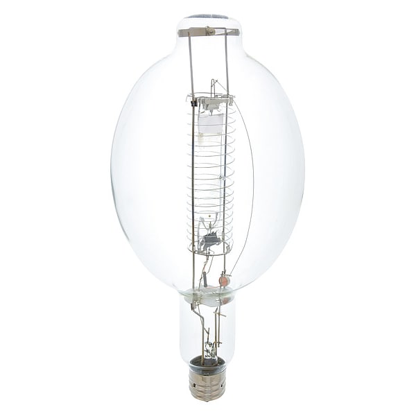 HID Bulb, Bulb Base Type Mogul Screw (EX39), Bulb Dia. 7 in, Bulb Housing Glass, Bulb Shape BT56, Color Rendering Index 65, Color Temperature 3500K, Lumens 108,000 lm, Light Technology Metal Halide, Overall Length 15 3/8 in, Shatter-Resistant No, Voltage 263V, Watts 1,000 W, Bulb Beam Angle 360 Degrees , Bulb Finish Clear, Rated Life 15,000 hr, ANSI Code M47/O, Dimmable No, For Enclosed Fixtures Yes, Bulb Operating Position Vertical Base Up +/-15 Degrees , Standards ANSI