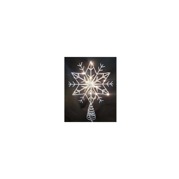 Lighted Snowflake Tree Topper, 20 Warm White LED Lights, Timer/Battery Operated, 12 In.