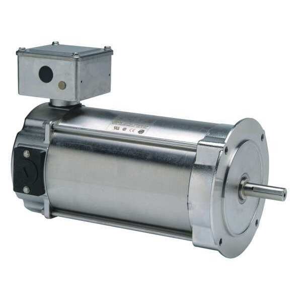 DC Washdown Motor, Motor Design DC Permanent Magnet, 3/4 HP, Nameplate RPM 1750, Voltage 90V DC, 7.5 Full Load Amps, 56C Frame, Full Load Torque 27.0 in-lb, Motor Thermal Protection None, Ins. Class F, Max. Ambient Temp. 40 Degrees C, Motor Enclosure Design Totally Enclosed Fan-Cooled, Motor Mounting Type Face, Shaft Dia. 5/8 in, Shaft Length 1 7/8 in, Brush Type Carbon, Overall Length 15 3/8 in, Length Less Shaft 13 7/16 in