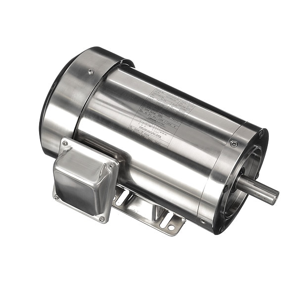Washdown Motor, Three Phase, Motor Design Three-Phase, 1 hp HP, Nameplate RPM 3,450 RPM, No. of Speeds 1, Voltage 230/460V AC, Full Load Amps 2.6/1.3 A, 143TC Frame, Usable @ 208V Usable at 208V, Usable @ 200V Not Usable at 200V, 60/50 Hz Hz, Motor Service Factor 1.2, Motor Thermal Protection Manual, Ins. Class F, Max. Ambient Temp. 40 Degrees C, Duty Cycle Continuous, NEMA Design B, Removable Base No, Motor Shaft Rotation CW/CCW, Motor Enclosure Design Totally Enclosed Fan Cooled