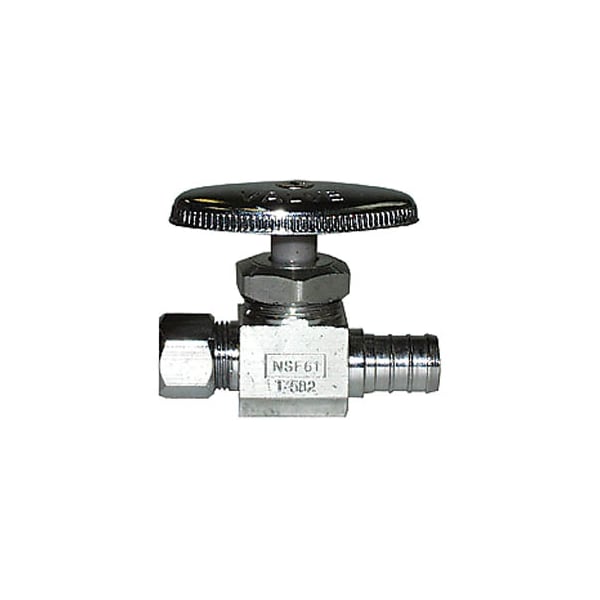 1/2 PEX x 3/8" OD T-582NL No Lead Chrome Brass Straight Multi-Turn Stop Valve