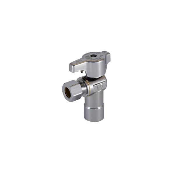 1/2SWT x 3/8" OD T-595NL No Lead Chrome Brass 1/4 Turn Angle Stop Valve
