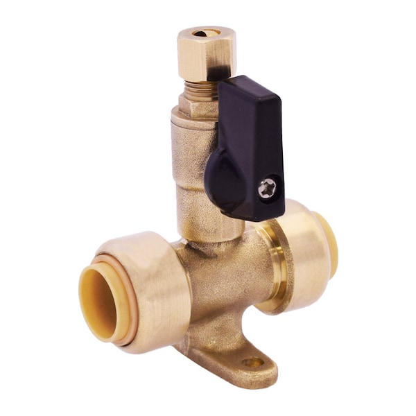 3/4” x 3/4” x 1/4” InstaLoc II No Lead, DZR Forged Brass Drop Ear Tee with Icemaker Connection Valve