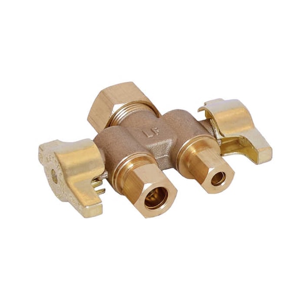 5/8" OD x 3/8" OD x 3/8" OD T-598NL No Lead Chrome Brass Dual Handle 1/4 Turn Angle Stop Valve