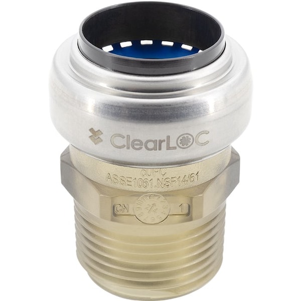 Transparent Push-to-Connect Fittings, 3/4in Push Fit X MNPT Adapter
