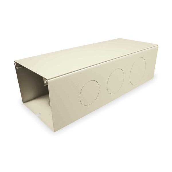 Connector Fitting, Series 6000, For Raceway Height 3 1/2 in, For Raceway Width 4 3/4 in, For Raceway Width x Height 4 3/4 in x 3 9/16 in, Material Steel, Color Ivory, Mounting Style Screw On, Backing -, Compatible with Product Type 6000 Raceways, Features Has 1-1/4 in, 1-1/2 in and 2 in Trade Size Knockouts in Back and on Each Side, Includes 1 1/2 in Trade Size Knockout, 1 1/4 in Trade Size Knockout, 2 in Trade Size Knockout, Connector, Overall Length 12 in, Standards ADA Compliant, CSA, UL