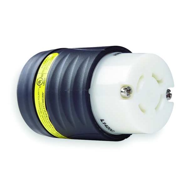 Ground Continuity Monitoring Locking Connector, Connection Orientation Straight, Current Rating 20 A, Housing Color Black, White, Housing Material Nylon, IP Rating Not Rated, NEMA Receptacle Configuration L14-20R, Number of Poles 3, Number of Wires 4, Phase Three, Resistance Properties Chemical Resistant, Impact Resistant, Shrouded No, Voltage Rating 125/250V AC, Wiring Style Standard, Contact Material Brass, For Maximum Cable Diameter 1.15 in, For Minimum Cable Diameter 0.225 in