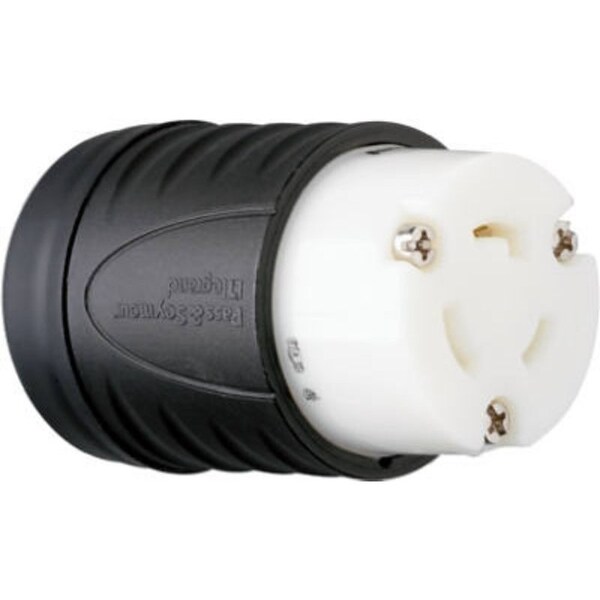 Pass & Seymour Turnlok Locking Connector, 125 V, 20 A, 2 Pole, 3 Wires, 18 to 8 AWG Cable/Wire, Grounding Type: Grounded, IP20 IP, - 40 to 75 deg C Operating, Nylon, Black/White, Dimensions: 2.2 in Dia x 3.33 in L, NEMA L5-20R