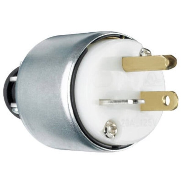 Pass & Seymour Armored Plug, 125 V, 20 A, 2 Pole, 3 Wires, Grounding Type: Grounded, Nylon, White, NEMA 5-20P