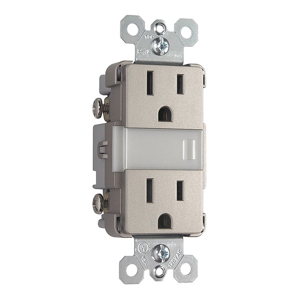 Combination Device, Cover Type No Cover, Current Rating 15 A, GFCI No, Grounding Grounded, Hazardous Location Specification Not Applicable, Housing Color Gray, Housing Material Plastic, Mount Type Recessed, NEMA Enclosure Rating 5, NEMA Receptacle Configuration 5-15R, Number of Gangs 1, Number of Poles 2, Number of Wires 3, Phase Single, Polarized No, Receptacle Type Duplex, Resistance Properties Impact Resistant, Tamper Resistant, Standards cULus Listed, UL Listed, Voltage Rating 125V AC