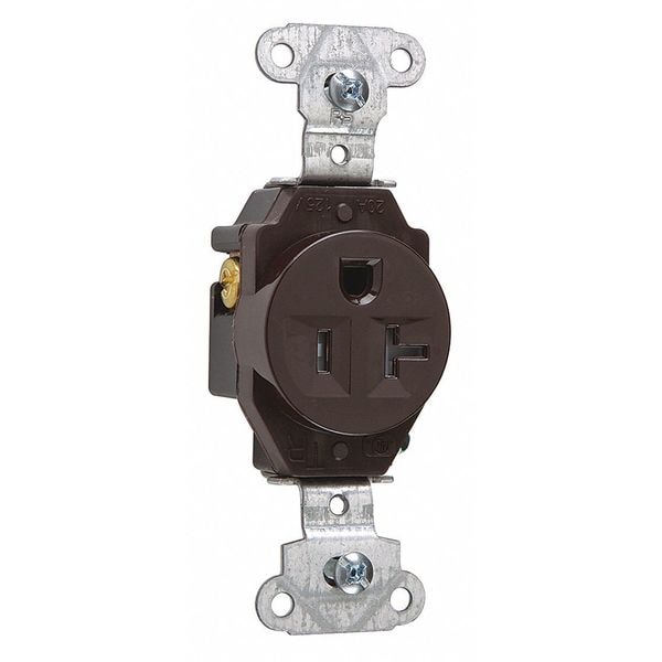 Receptacle, Connection Orientation Straight, Current Rating 20 A, Grounding Grounded, Housing Color Brown, Housing Material Nylon (Face), PVC (Back Body), Mount Type Flush, NEMA Receptacle Configuration 5-20R, Number of Gangs 1, Number of Poles 2, Number of Wires 3, Phase Single, Receptacle Type Single, Resistance Properties Corrosion Resistant, Tamper Resistant, Standards cULus Listed, UL 498, Voltage Rating 125V AC, Wire Connection Type Screw Terminals, Wiring Method Back, Side