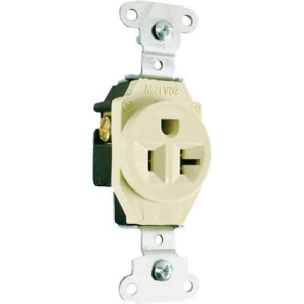 Pass & Seymour Heavy-Duty Single Receptacle, 125 VAC, 20 A, 2 Pole, 3 Wires, Side Wiring, 14 to 12 AWG Wire, NEMA 5-20R, Ivory, Dimensions: 1.32 in W x 1.08 in D x 3.28 in H