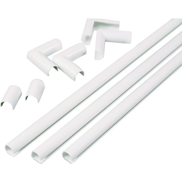Kit includes three 3 ft sections of channel, two couplings, one inside elbow, one outside elbow and two flat elbows