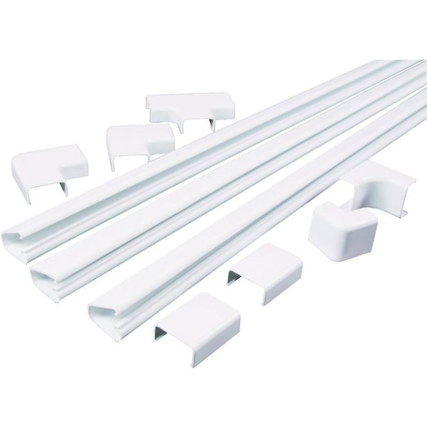12' of Cord Channel (3 sections, 4' long); 2 Flat Elbows; 1 Inside Elbow; 1 Outside Elbow; 2 Couplings; 1 T-Fitting