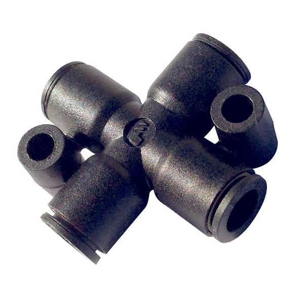 Push-Fit Cross Fitting, Application Automotive, Packaging, Pneumatics, Robotics, Textile, Vacuum, Color Black, Fitting Side A Connection Type Push-to-Connect, Fitting Side B Connection Type Push-to-Connect, Fitting Side C Connection Type Push-to-Connect, Fitting Side D Connection Type Push-to-Connect, Material Grade Not Applicable, Includes Pre-Applied Thread Sealant Pre-Applied Thread Sealant Not Included, Fitting Side B Tube Outer Diameter 5/32 in, Fitting Side C Tube Outer Diameter 5/32 in
