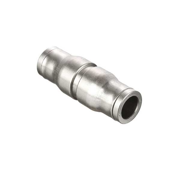 Push-Fit Union Fitting, Application Lubrication, Fitting Side A Connection Type Push-to-Connect, Fitting Side B Connection Type Push-to-Connect, Fitting Side A Tube Outer Diameter 14 mm, Fitting Side B Tube Outer Diameter 14 mm, Fitting Material Brass, Material Grade C36000, Color Silver, Maximum Operating Pressure 30 barg, Maximum Operating Temperature 302 Degrees F, Overall Length 52 1/2 mm, Specific Fitting Shape Straight Connector