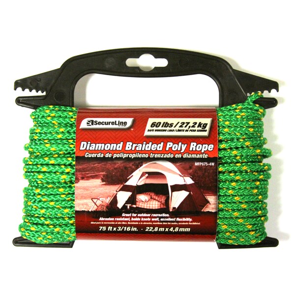 SecureLine 3/16 in. D X 75 ft. L Green Diamond Braided Polypropylene Rope