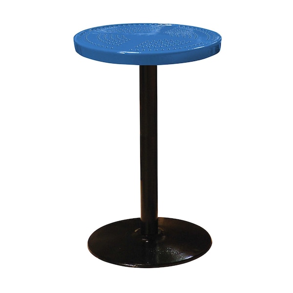 24" Round Perforated Pedestal Table, Portable, 40"H, Blue