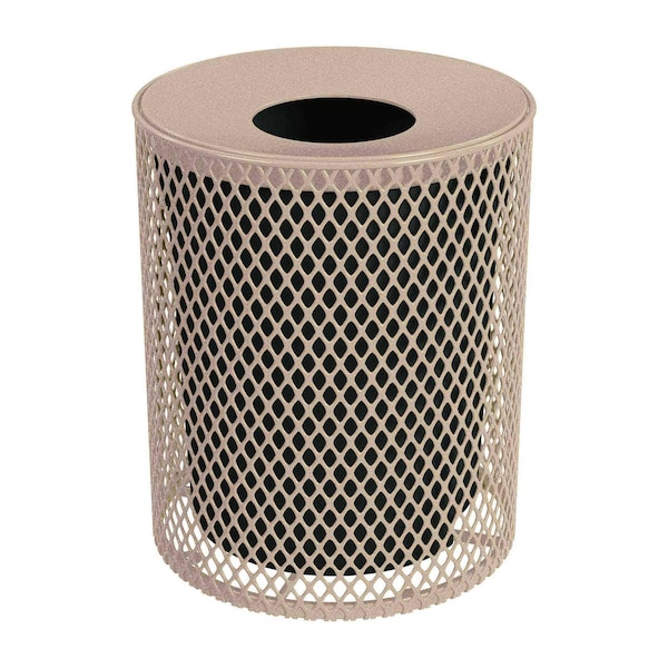 32 Gallon Receptacle with Lid and Liner, Expanded Metal, Portable, Sandstone