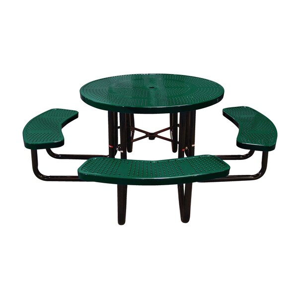 46" Round Picnic Table, Perforated Metal, Portable, Black Green